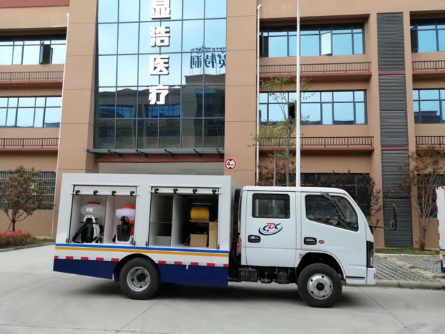 用于消殺室外環(huán)境的細菌,病毒,和蚊蠅等媒介昆蟲。車內(nèi)配置超低容量噴霧機、常量噴霧機等設備。可消毒處理面積:>500㎡可連續(xù)反復充裝;殺蟲處理面積:2500—100000㎡。